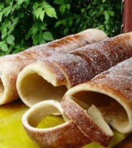 A kürtöskalács kb. 10-15 perc alatt sül meg, azután óvatosan leszedjük, és felállítva, fogyasztásig letakarjuk, egészben tesszük az asztalra.