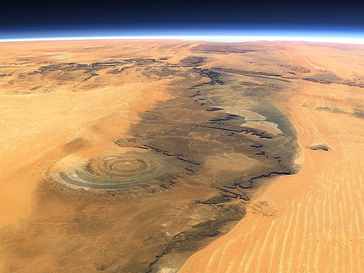 A 48 kilométer átmérőjű, Richat struktúrának nevezett koncentrikus körökből álló alakzat másik neve a Szahara vagy Föld szeme. Keletkezését illetően máig nincs megegyezés a tudóstársadalom között. Egyes elképzelések szerint egy meteorit – becsapódás következtében jött létre, azonban ezt cáfolja, hogy a kráter alapja lapos illetve sehol máshol nem találtak a Szahara területén ehhez hasonló nyomokat, mely igazolhatott volna egy ilyen nagy erejű becsapódást.