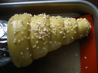 Óvatosan tegyük tepsibe, majd kenjük be a tojásfehérjével és szórjuk meg a köménymaggal. Rakjuk a sütőbe és 25 perc alatt süssük készre.